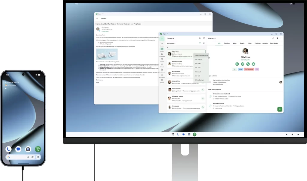 Get more power for multitasking with Desktop Mode. Connect your Pixel to a larger screen and enjoy a seamless, desktop-like experience. Schedule meetings on your monitor while finalizing details on your phone, all without missing a beat.